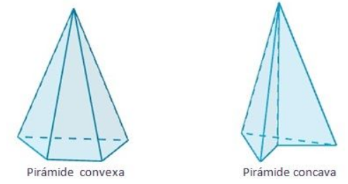 - Pirámide convexa: la pirámide es convexa si la base es un polígono convexo.