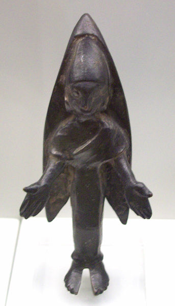 La llamada Dama de Baza es una escultura y una urna cineraria, tallada hacia el 400 a.C. Representa a una mujer sentada en un trono alado, probablemente una divinidad de la muerte, captada según un esquema iconográfico de diosa sedente y trono alado, muy repetido en el ámbito griego o helenizado. Está vestida con tres finas túnicas; un manto le cubre la cabeza y cae a lo largo del cuerpo. Se adorna con una tiara, pendientes, gargantillas y collares; en los dedos lleva varios anillos. Sus pies calzan zapatillas rojas y descansan sobre un cojín. Este conjunto de elementos suntuarios y simbólicos permiten pensar que la mujer representada es una diosa-