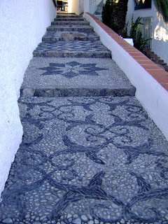 Los nazaríes también empleaban el empedrado o "mosaico granadino" para realzar sus construcciones, pero representando sólo formas geométricas o vegetales, posteriormente, con la llegada de la cultura occidental el abanico de formas se amplió con representaciones de animales o personas al no estar prohibidas por la nueva religión.